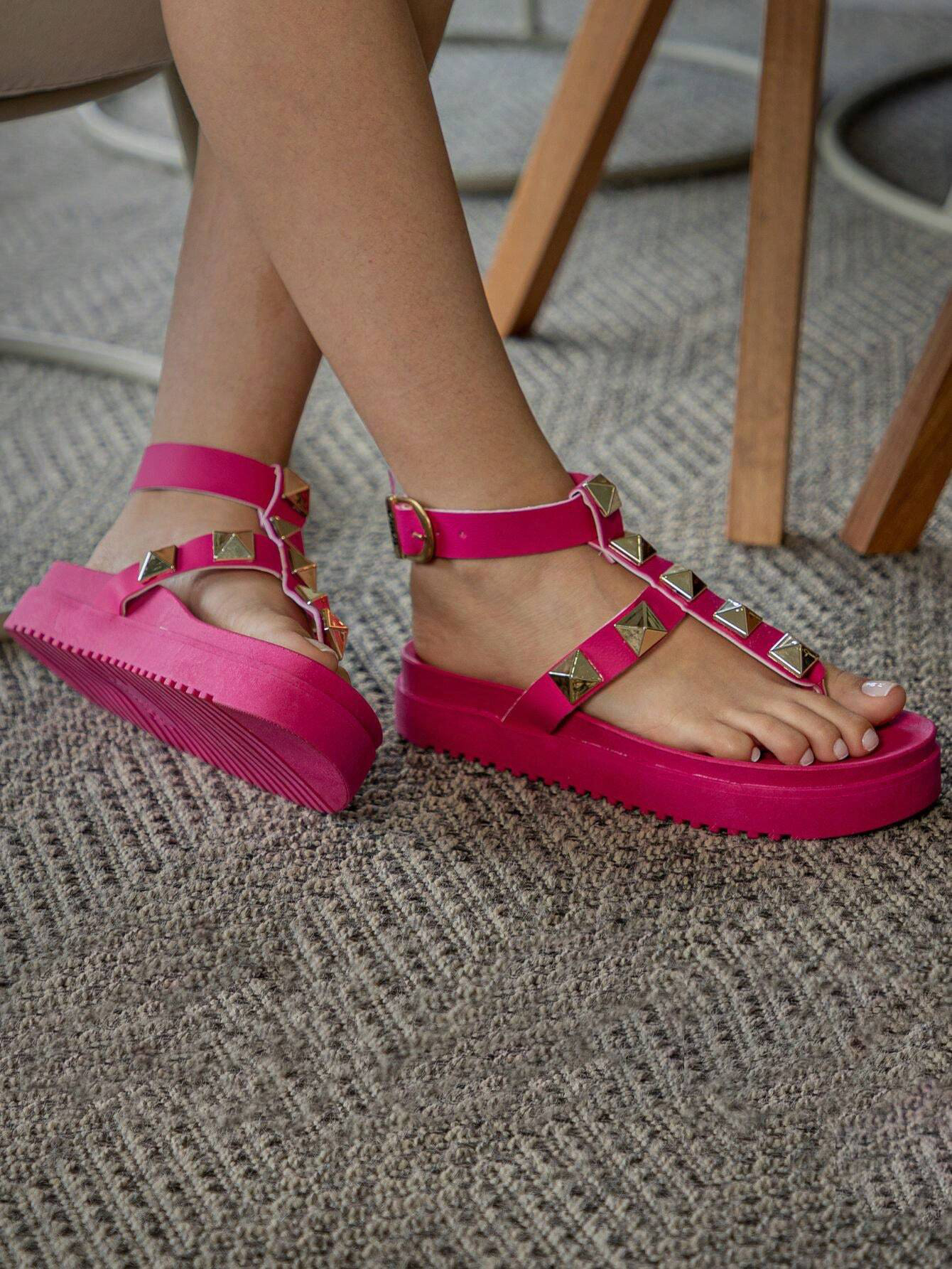 Sandália Papete Feminina Fivela Pink